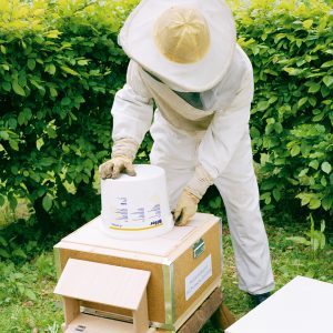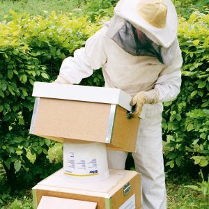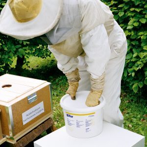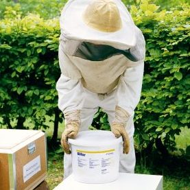 Det enda du behöver göra är att ta bort skyddstejpen som täcker hålen i locket, vända hinken upp och ned och placera den på bärlisterna. Sedan klarar bina resten. Bekvämt, rent och tryggt.